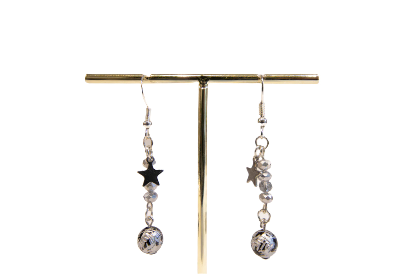 Dragons Grace - Silver dragons engraved on black agate set with silver Austrian crystals and stars
