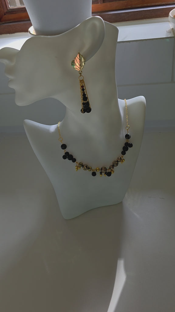 Gold-Coated Lava, Jet & Obsidian Princess Necklace – Power, Protection & Elegance