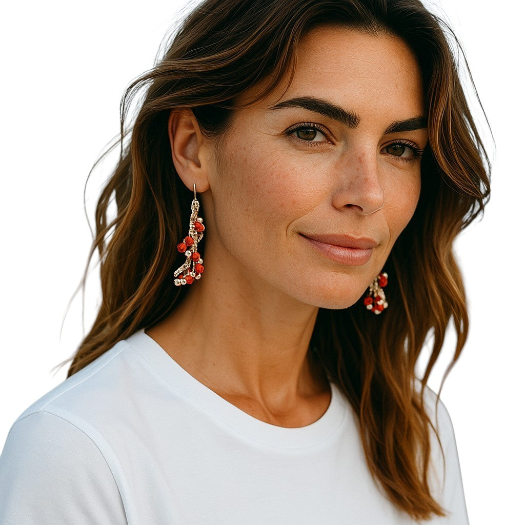 The rich crimson hue of the crystals brings warmth and sophistication, while the minimalist silver chain keeps the look light and modern. Perfect for day-to-night wear, whether you're heading to brunch or a special evening out.