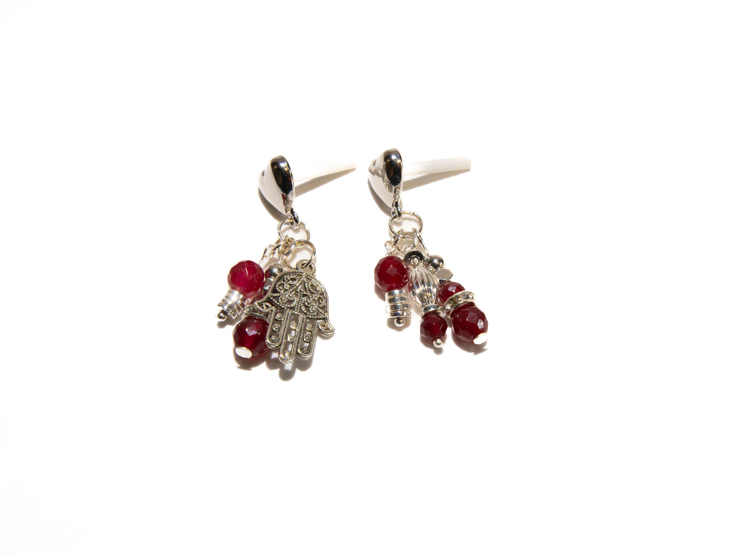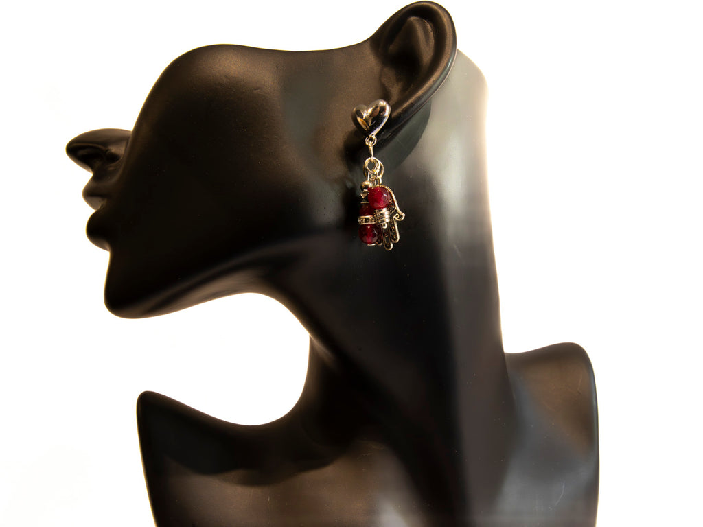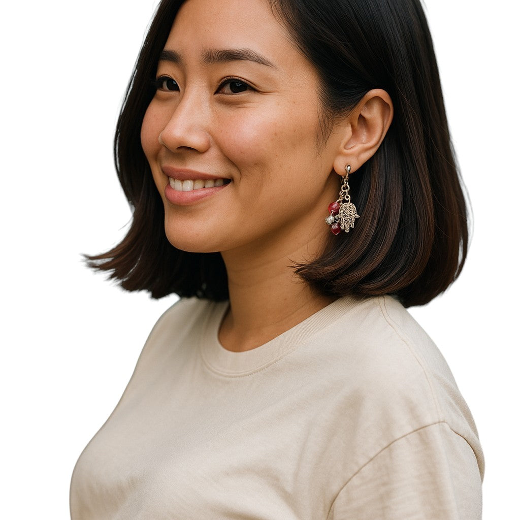 Red Garnet & Silver Hand of Fatima Earrings β Protection & Elegance in One
