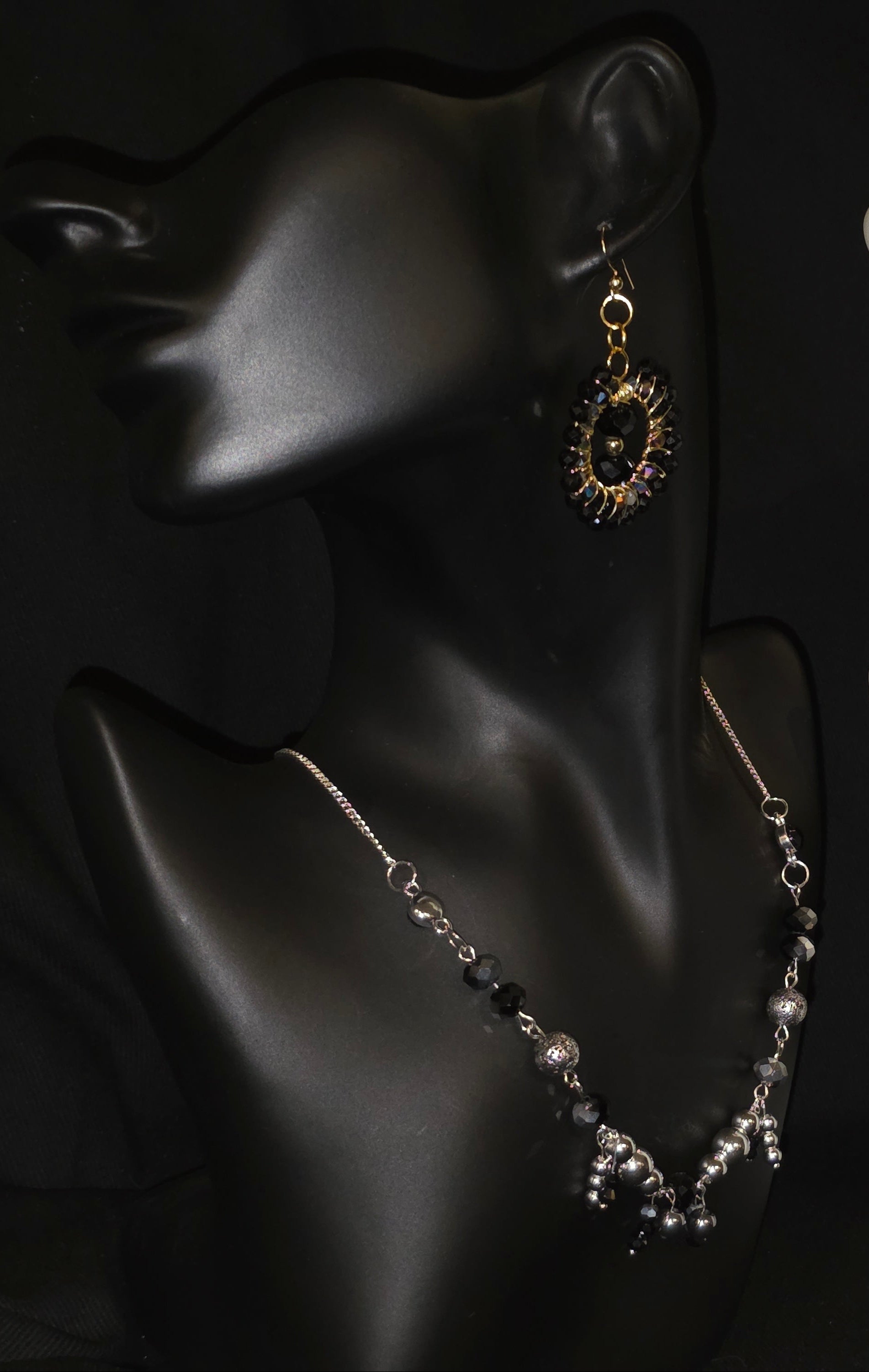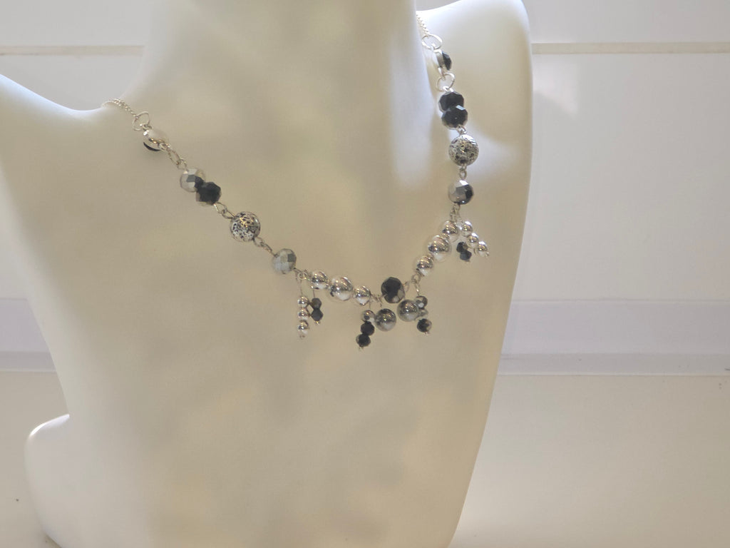 Silver and Black Austrian Crystals with Silver coated Lava Beads, Princess Necklace